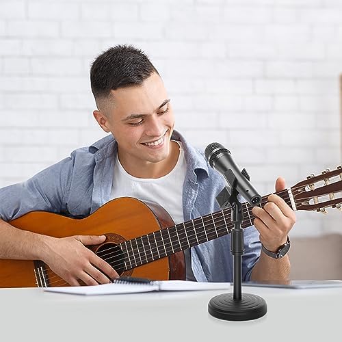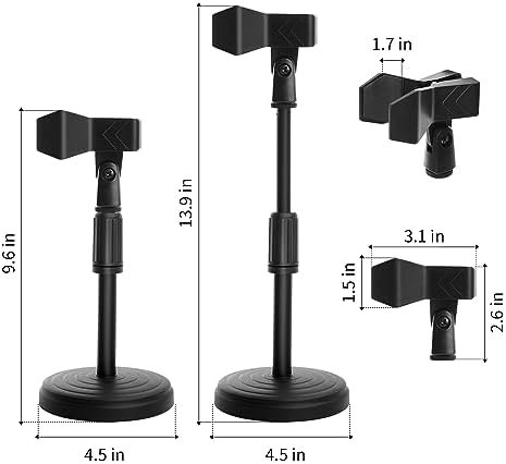 Desk Mic Stand – Upgraded Adjustable Table Microphone Stand with Mic Clip Compatible with Max 1.7 inch Diameter Microphone – Height 9.6 to 13.9 inch